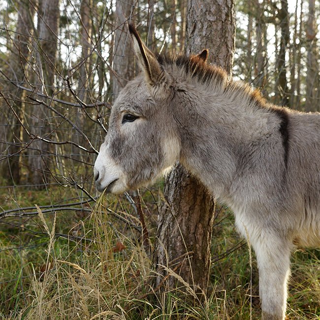 Esel sind Wüstentiere und deshalb sehr gute Futterverwerter, d.h. sie brauchen nur wenig Futter. Zu viel und falsches Futter lässt sie zu dick werden, kann zu Koliken oder Hufkrankheiten führen. Sie fressen hauptsächlich Heu und Stroh, Rinden, Stöcke und dürfen selten als Leckerli mal eine Möhre oder einen Apfel bekommen.