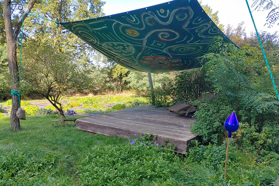 Der „Blaue Garten” wurde um die Bühne im unteren Bereich des Parks angelegt.