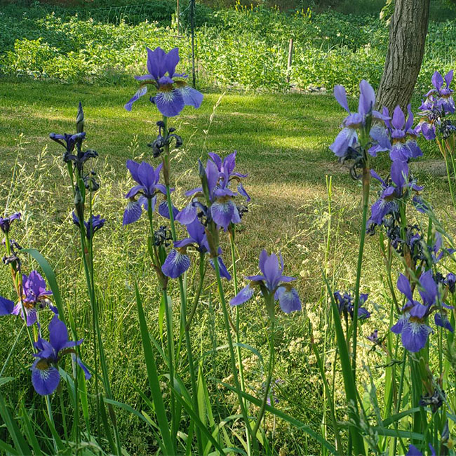 Wenn die ersten Frühlingsblumen ihre Köpfe aus dem Boden wagen, kann man am Hang im Bereich des Blauen Gartens Blausterne wachsen sehen, die den kompletten Hang überfluten. Und im Sommer sieht man entlang des Wasserlaufs bei der Bühne viele Sumpfschwertlilien.