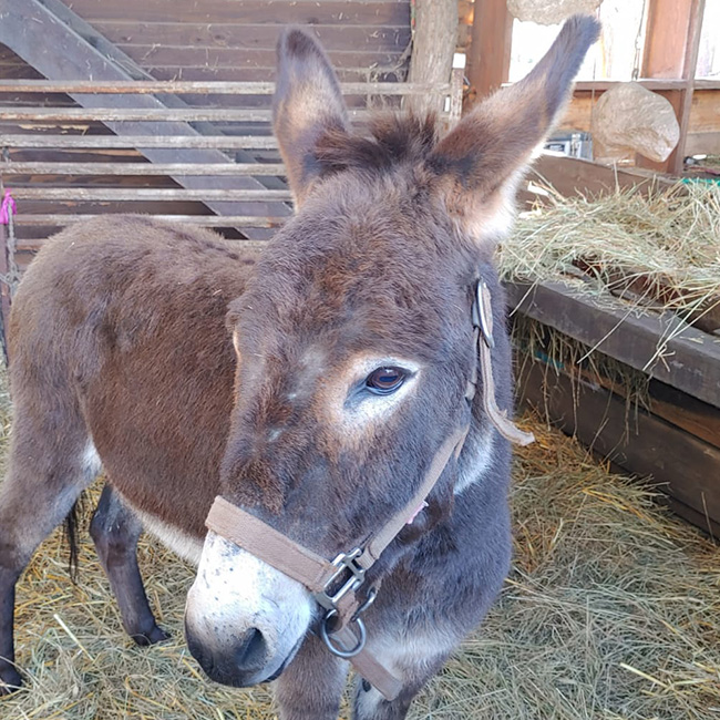 Brauni war zusammen mit Knospe die erste Eselin auf dem Rietzer Berg. Sie ist gewitzt und begleitet Besucher gern auf dem Grundstück. Außerdem ist sie eine sehr umsichtige Mutter und passt gut auf ihren Sohn Basil auf, der im August 2022 geboren ist. Ihr Sohn Flocke ist im Winter 2021 geboren.