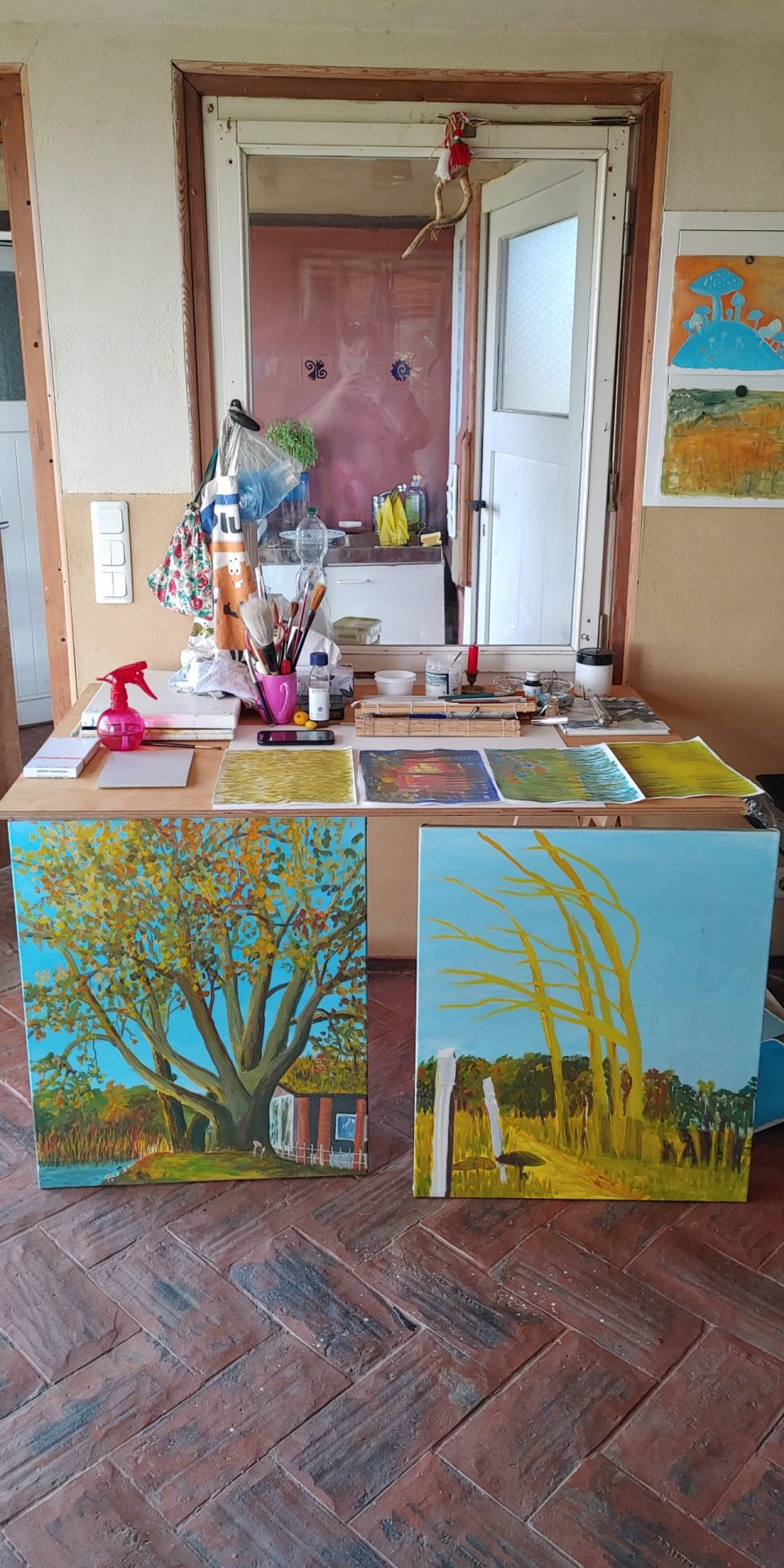 Astrid, who studied business administration and has worked as an artist full time for some years, dedicated her time in our residence to experimenting with oil paintings and enjoyed painting in front of the house. But she also created some paintings using egg tempera and watercolors. And most paintings show mushrooms.