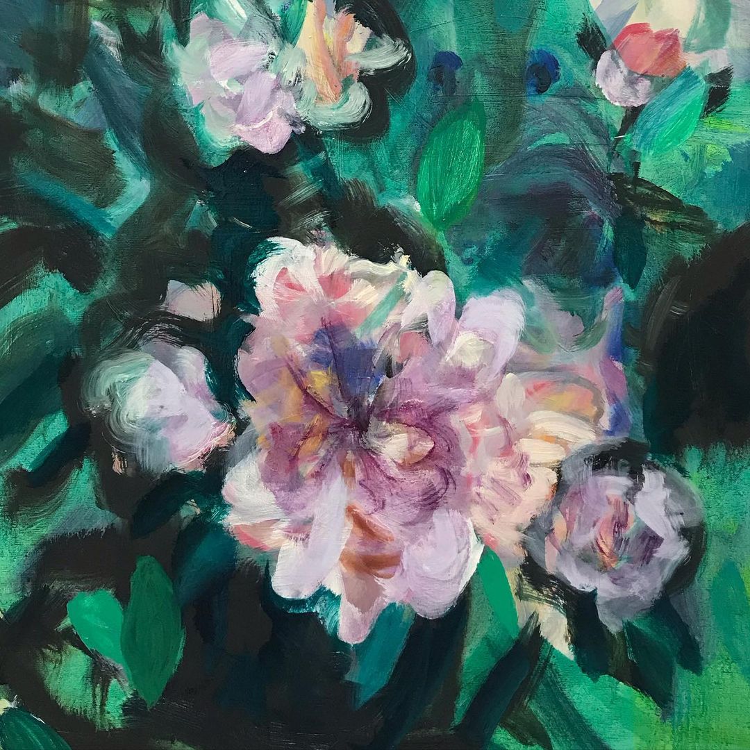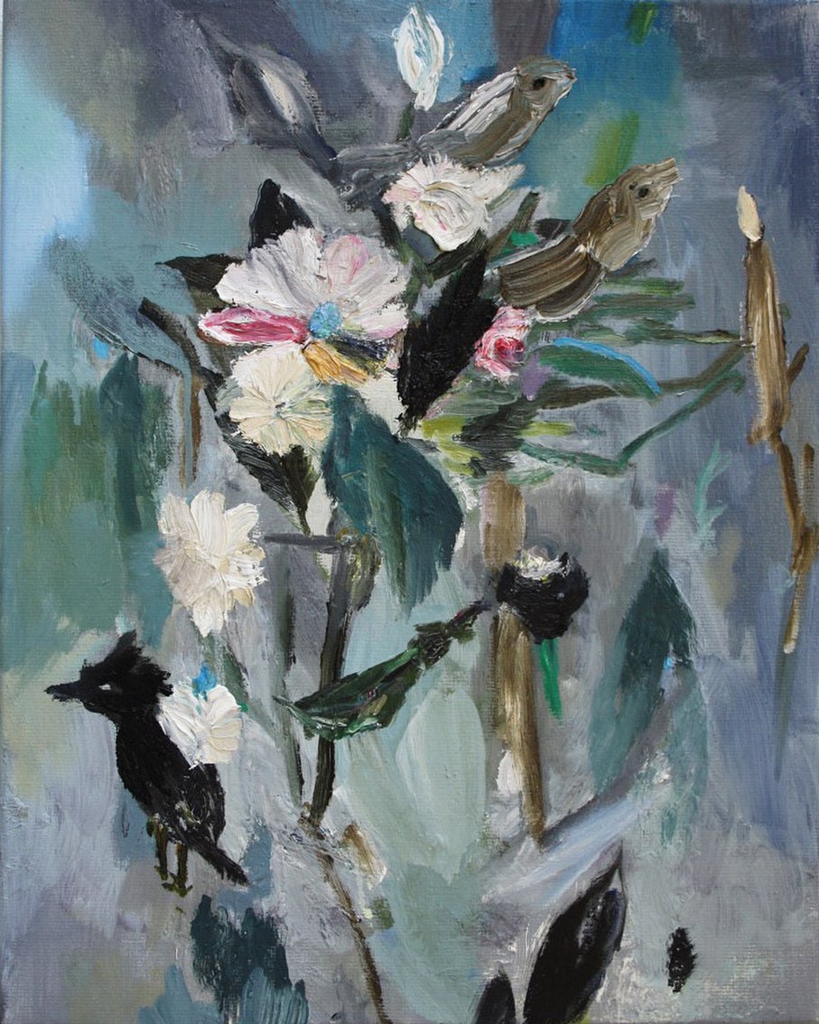The works of Eva Räder are mostly oil paint on canvas, the motifs change from flowers to figures and landscapes. Her paintings are sensual and graceful as well as massive and sometimes roughly painted in distinctive styles and colors and focus on the complex structures of humans.