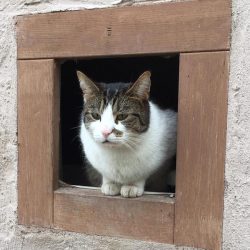 Luna likes to spend her days in the office in the art barn and needs a lot of attention if she doesn't happen to be sleeping. If there is anything edible she will meow loudly to get a fair share.
