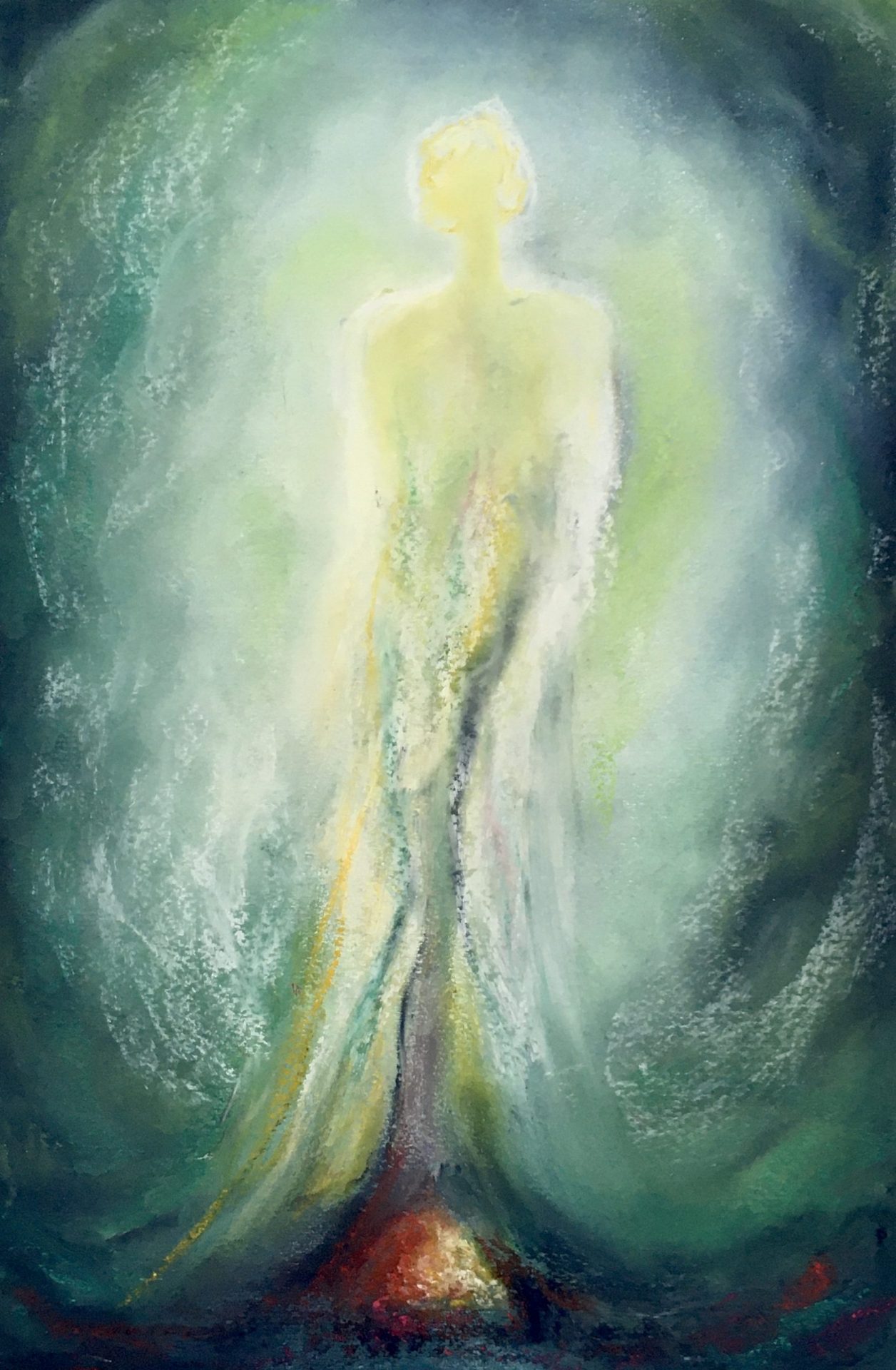 One of the works that was created at Rietzer Berg is "Mondgöttin in Pastell" (Moon goddess in pastel shade). The artist herself about the painting: " This is a painting that developed intuitively and represents the energy of the location. It shows a connection to the plant mandrake."