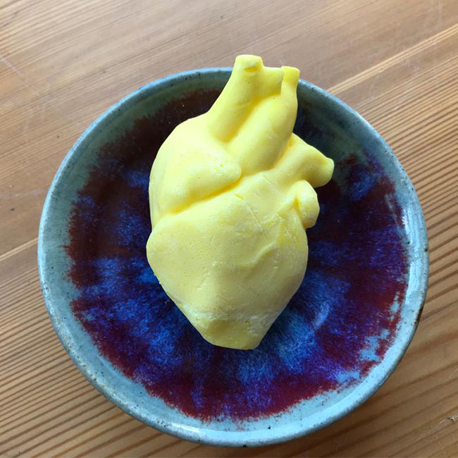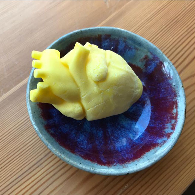 A yellow heart made out of natural soap is now part of the art collection at Rietzer Berg. The heart that is cast into a shape by artist Nadine Karl is supposed to represent the loss of materiality and will be exhibited in public space.
