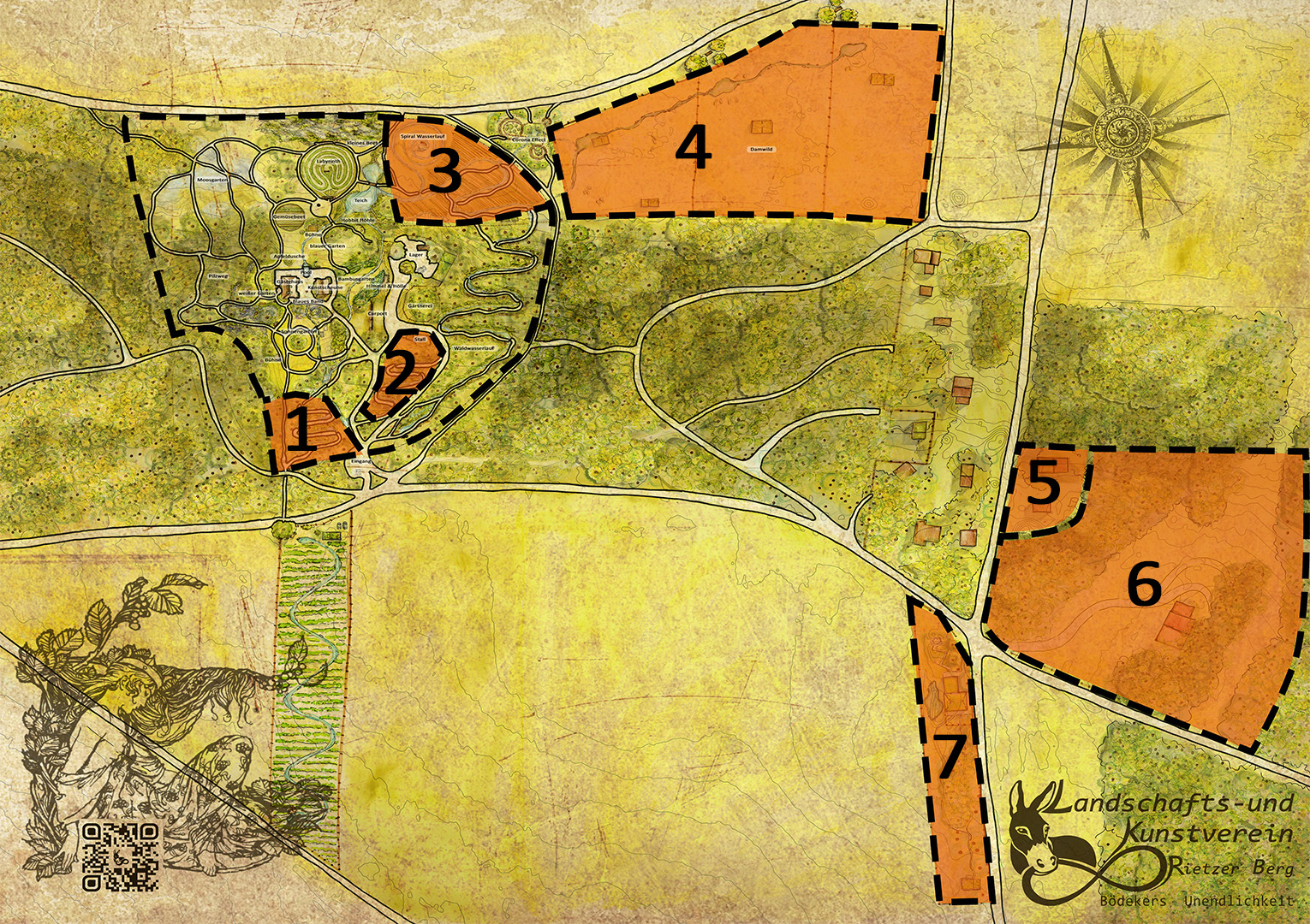 Die sieben haben eine wichtige Aufgabe. Sie pflegen gemeinsam mit den Schafen den Wald. Hier breitet sich ohne ihre Hilfe nämlich die invasive Traubenkirsche aus, deren bittere Zweige und Blätter sogar von Rehen verschmäht werden. Aber dank unserer Bergbewohner können sich ökologisch wertvolle Unterholzgesellschaften entwickeln. Außerdem beschützen die Esel die Schafe und begleiten verspielt und gewitzt auch manche Gartenbesucher.
