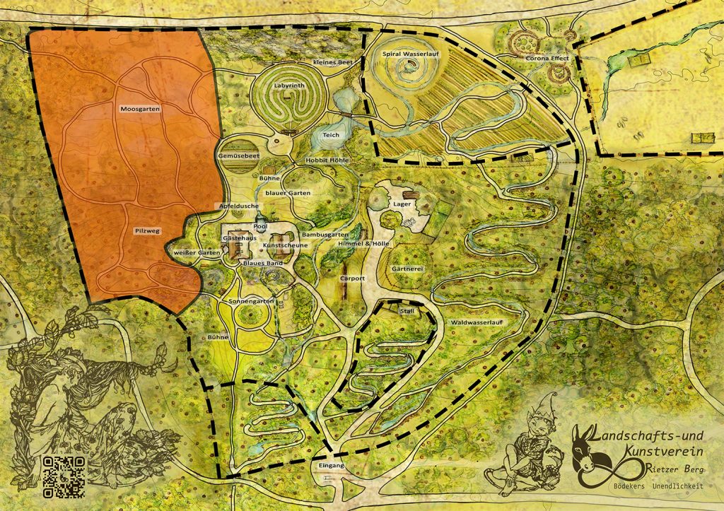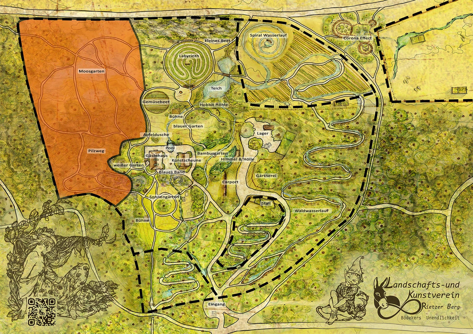 Auf den sogenannten Pilzwegen geht man auf sanft geschwungenen Pfaden den Rietzer Berg hinunter, die alle in den Moosgarten führen. Am oberen Ende der Pilzwege um die Holzbank herum befindet sich zudem der sogenannte „Weiße Garten” mit Schneeglöcken, Christrosen, Hyazinthen, Hasenglöckchen, Astern und Herbstanemonen.