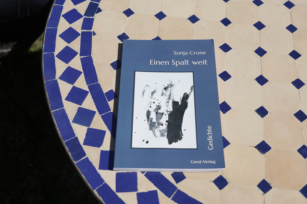 Für zwei Wochen ist die gebürtige Rheinländerin aus der Schweiz zu uns gekommen. Seit 15 Jahren wohnt sie dort und hat sich eingerichtet. Seit ihrer Kindheit wollte Sonja Schriftstellerin werden und fühlte sich zu Gedichten besonders hingezogen, schreibt gern selbst welche. Ihr Lyrik-Debüt „Einen Spalt weit“ im Gepäck, hat sie an einem sonnigen Sonntag im Landschaftspark daraus vorgelesen.