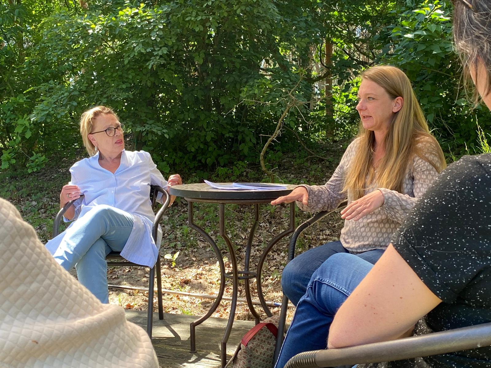 Sie ist jeden Morgen früh aufgestanden und abends, erschöpft von den vielen Eindrücken, früh zu Bett gegangen. Ausflüge ins Kloster nach Lehnin, in die Stadt Brandenburg und in den Park Sanssouci nach Potsdam haben sie beeindruckt. Hier in Brandenburg hatte sie stets das Gefühl, mit Fontane zu reisen und auf den Spuren von Effi Briest zu sein, einem Lieblingsroman von ihr. Während sie in der Schweiz das Fahrrad ständig den Berg hochschiebt, erschien ihr in diesem flachen Land Brandenburg alles schnell mit dem Fahrrad erreichbar. Und so hatte sie sich gleich am zweiten Tag verschätzt und musste nach vier Stunden das Fahrrad stehen lassen und mit dem Bus zurück. Was ihr hier besonders aufgefallen ist? In der Natur wurden ihre eigenen Verletzlichkeiten sichtbar, von denen sie durch den Lärm und die Hektik der Stadt abgelenkt wurde. Insgesamt ist sie viel weniger zum Schreiben gekommen, als sie geplant hatte. Doch die Erlebnisse und Eindrücke von hier werden ihr ein innerer Fundus für zukünftige Arbeiten sein.